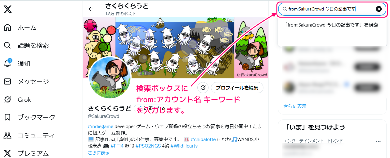 Twitter(現X) 指定したアカウントで指定したキーワードと日付範囲で検索1