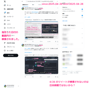 Twitter(現X) 指定したアカウントで指定したキーワードと日付範囲で検索5