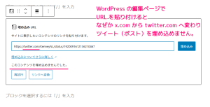 WordPress6.8 Twitter(現X)のツイート(ポスト)を投稿記事に埋め込む9