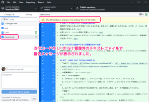 GitHub Desktop アプリの差分の改行コードに関する警告の表示条件の調査改行コード LF と CRLF の差3