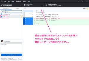 GitHub Desktop アプリの差分の改行コードに関する警告の表示条件の調査8