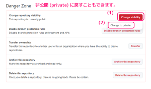 GitHub 作成したリポジトリの設定を非公開から公開に変更して一般公開する10
