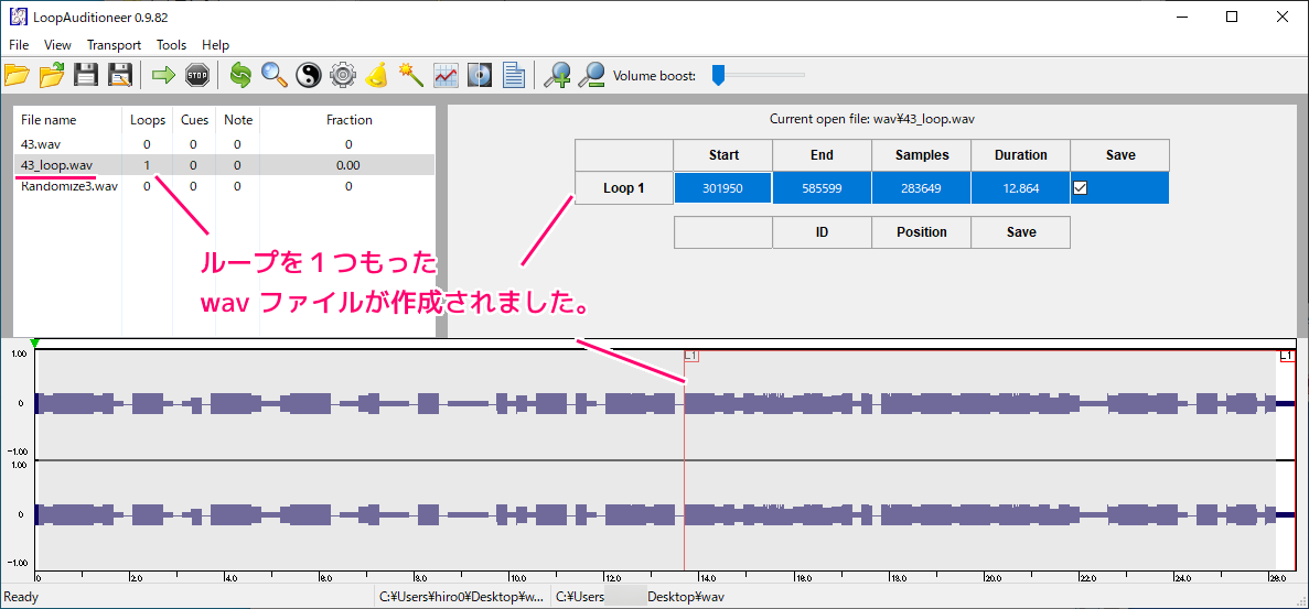 LoopAuditioneer で wav のループポイントを設定する11