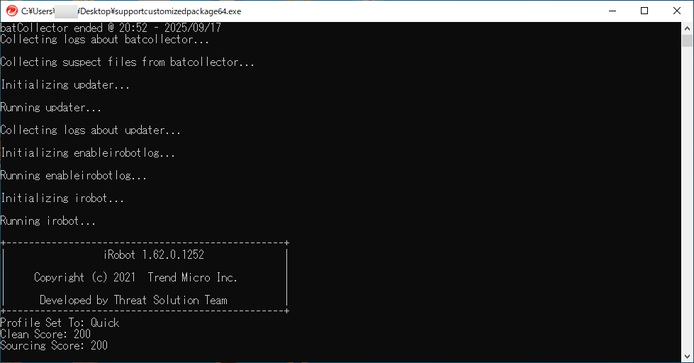 - ウイルスバスター月額版のウイルスログを採取するために、supportcustomizedpackage (64bit CLI 版) ソフトウェアをインストールしました。