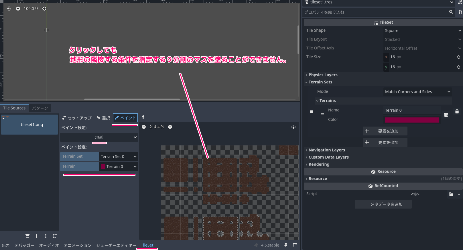 Godot4 Tileset の地形の9分割の隣接条件を塗れないときの対処例1