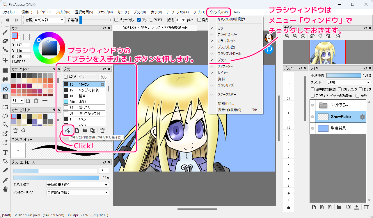 FireAlpaca 無料ブラシ SnowFlake で雪の結晶をたくさん描く2