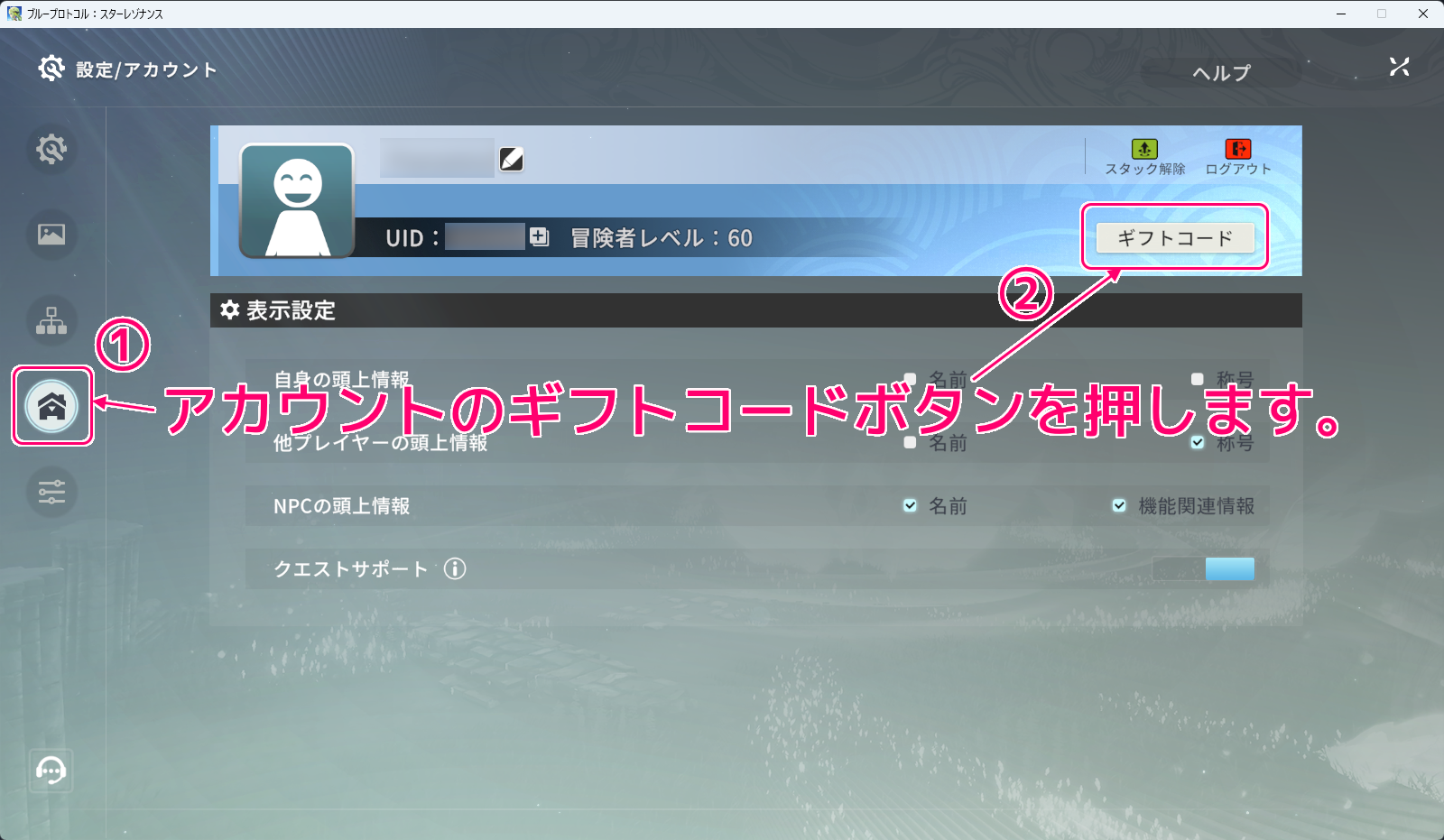 ブループロトコル:スターレゾナンス ギフトコードのアイテムを受け取る手順3