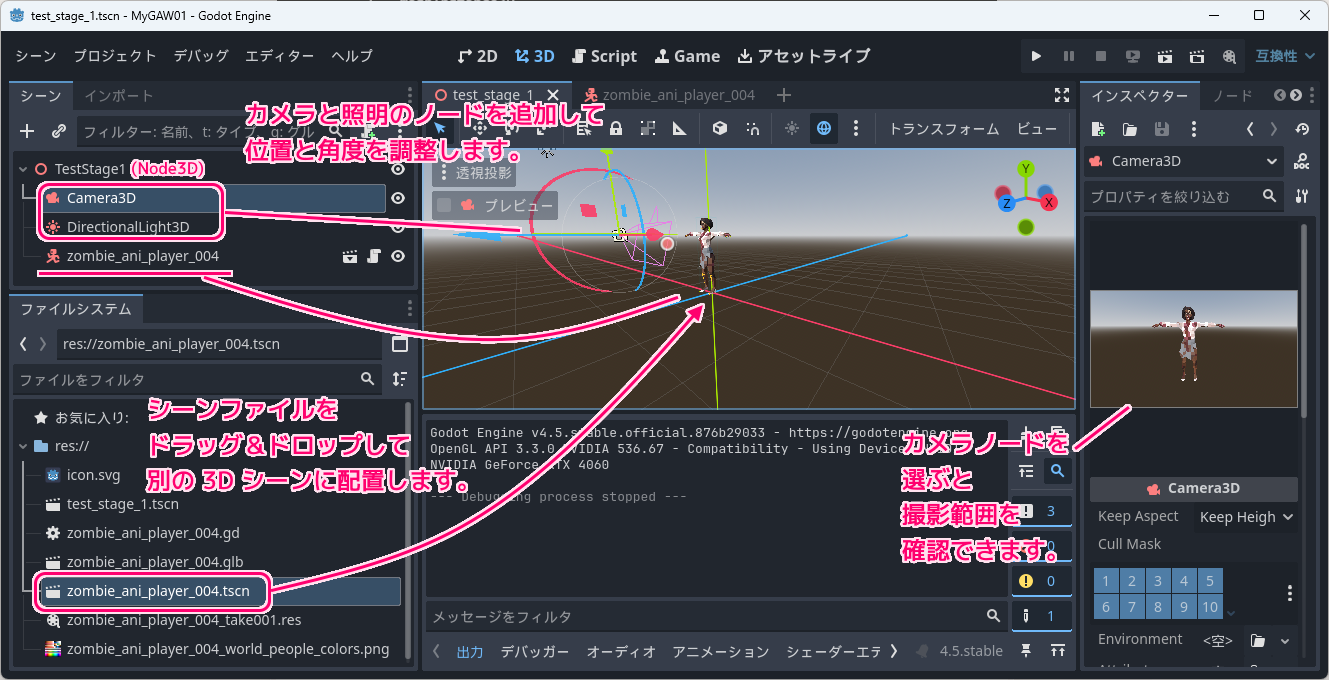 Godot4 .glb(glTF) 3D モデルに当たり判定を設定する例21