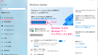 Windows 10 Home (64 bit) を、Windows 11 へアップグレードする手順を紹介します。PC を使用できない時間は意外に少なく、Windows 10 を使用している間にダウンロードとインストールが1~2時間で完了して、そのあと、PC を再起動するだけでした。
