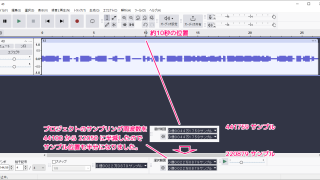 無料の音声編集ソフト Audacity で、読み込んだ音声ファイルのサンプリング周波数を確認して、プロジェクト全体のサンプリング周波数をそれに合わせる手順を紹介します。ウィンドウ下部に表示されている選択範囲を表す時刻表示をサンプル位置に変更したり、タイムラインの「分と秒」「ビートと小節」の切り替えについても紹介します。