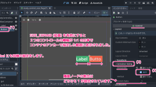 GodotEngine4で、ラベルやボタンなどのControl派生ノードを整列させるContainer派生ノードのシーンで最上位のコンテナの配置をアンカーを用いて設定して、ウィンドウのリサイズに対応させる実装例を紹介します。コントロールのサイズが小さくならない原因のひとつであるテキストのサイズについても検証しました。